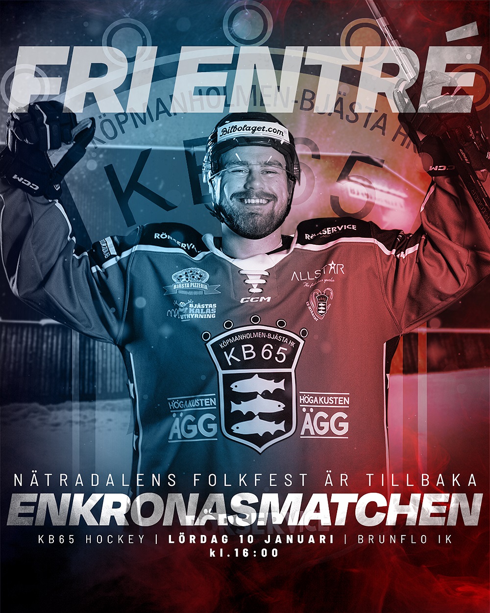 100 kr st och pengarna går rakt till KB65 Hockey.